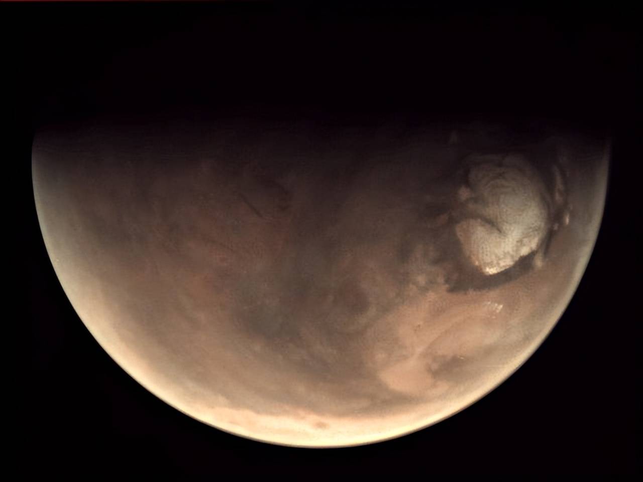 火星被归类为类地行星,在许多方面与地球相似,有山谷、火山,甚至有干涸河床的证据。然而,相似之处就止于此了,极地帽主要由二氧化碳冰构成,大气不透气,表面又冷又干。