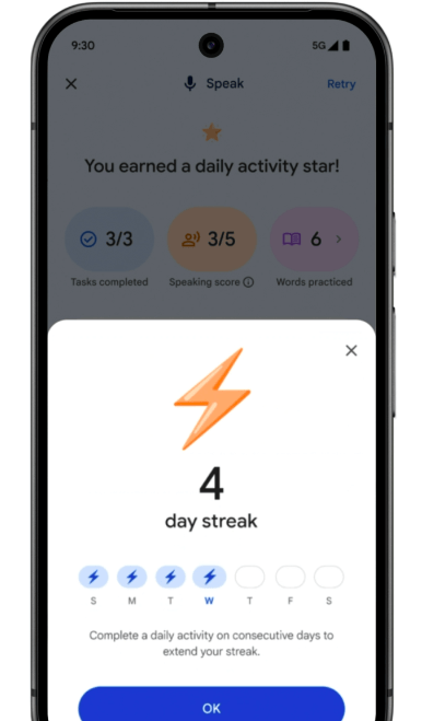 该功能的落地,离不开Gemini模型的技术支撑。相较于旧版,升级后的系统能深度解析语境,比如将英语习语“stealing my thunder”精准译为“抢我风头”,而非机械直译。在口语练习场景中,模型可捕捉用户的语气、重音差异,提供发音改进建议,配合进度追踪功能,实现“学用结合”。目前,该功能已支持英语与德语、汉语等近20种语言的学习场景,首批在美、印等市场上线。
